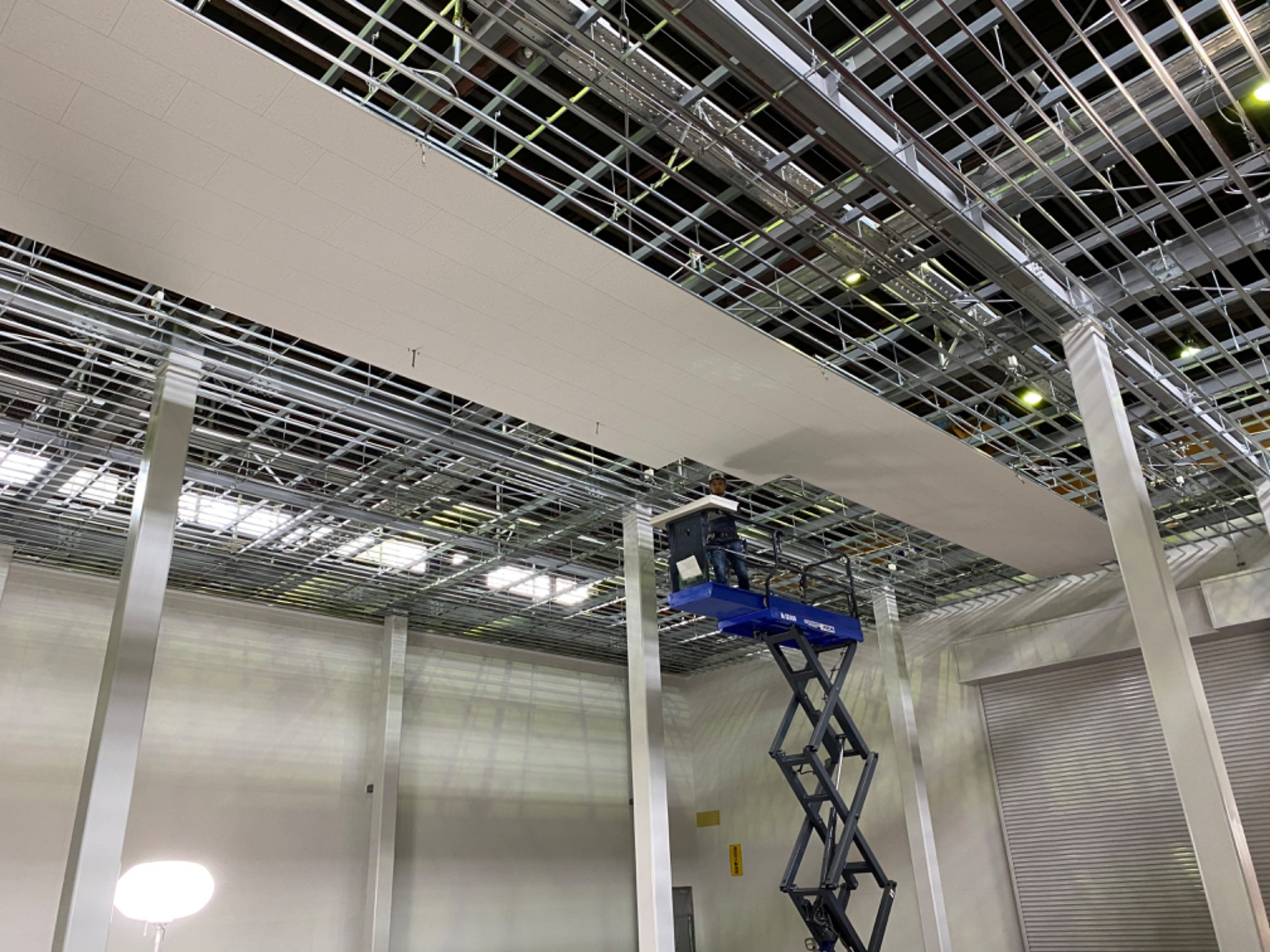 壁面は目地にジョイナーを入れてプラスターボードの2層貼り、天井はジプトーン貼りと初心に帰るような作業です!